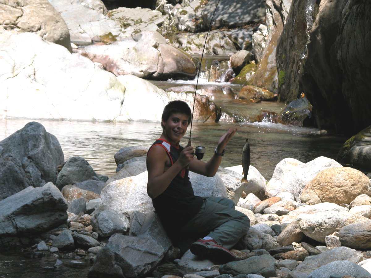 Il posto segreto (torrente Elvo), con la roccia porta-telone e Manuel miracolato....